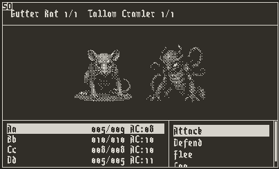 The combat UI also needed some refinement specifically to ensure consistency with the dungeon view and then to ensure that menus and logs scroll appropriately. To this end I've added scrolling, removed the UI carets, and used highlighting for menu and player/enemy selection.